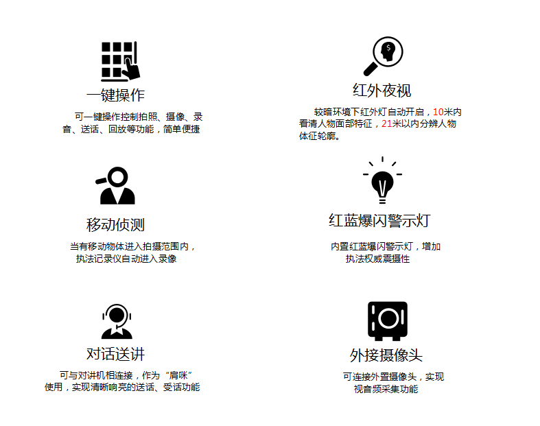 EzpayDSJ-200F 执法仪(法院/政府/城管)拍摄像素高达5000万,广角镜头137,拍摄画面精细而全面,大容量电池支持陆续在工作12小时不断电